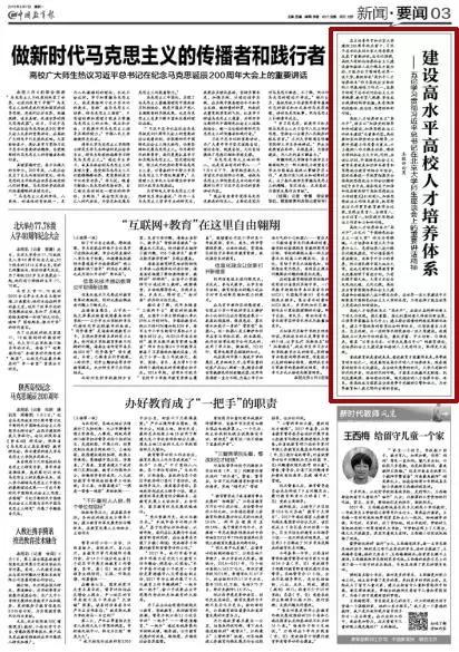 在五四青年节和北京大学建校120周年校庆前夕,习近平总书记来到北京大学考察并发表了重要讲话。总书记强调,高校只有抓住培养社会主义建设者和接班人这个根本才能办好,才能办出中国特色世界一流大学,要把形成“高水平人才培养体系”作为高校应当抓好的三项基础性工作之一。这集中体现了总书记对社会主义办学规律、教书育人规律、学生成长规律的科学把握,具有很强的战略性、政治性、思想性和针对性。