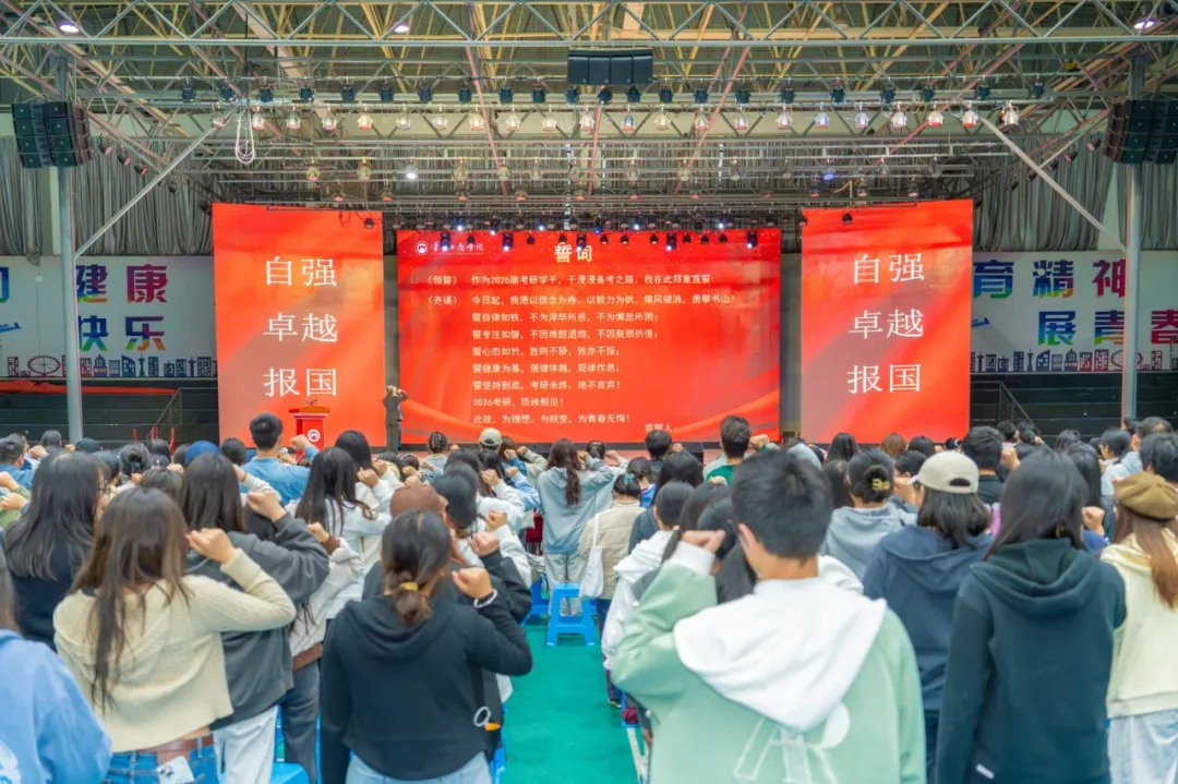 全体2026届考研学子庄严宣誓:“以信念为舟,以毅力为帆,乘风破浪,勇攀书山!”铿锵誓言展现了学子们迎战考研的坚定决心。当青春与理想共振,这场备考征途本身已成为最闪耀的勋章。