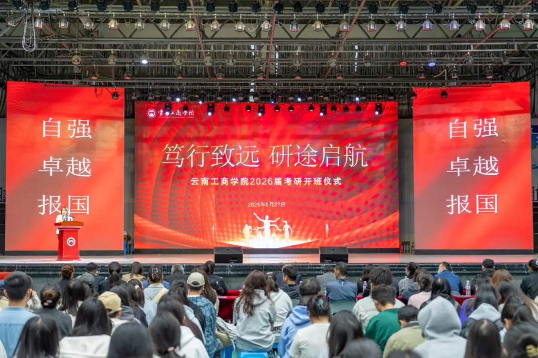 5月27日,云南工商学院举行2026届考研开班仪式。执行董事长姬其佐出席活动,相关部门、各二级学院院长、党委书记及1000余名师生参加活动,活动由副校长马晓红主持。